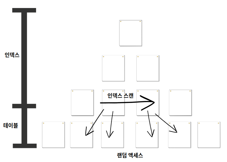위 그림과 같이 인덱스 스캔 중 학생명부에 시력이나 이름이 없는 경우 해당 학생을 찾기 위해 테이블에 가서 확인 해야 한다.