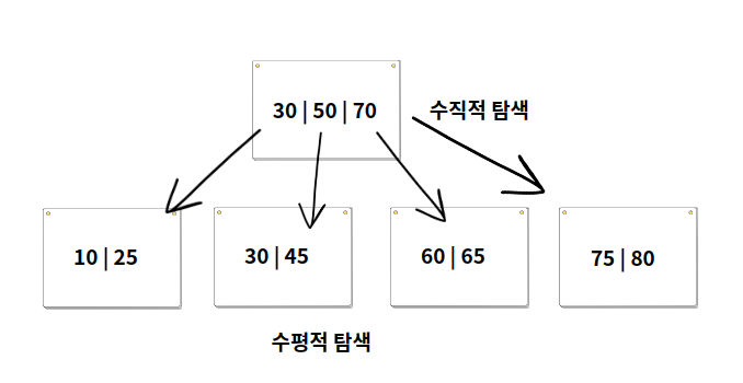 수평적 탐색이기때문에 노드당 키값이 여러개가 될 수 있다.