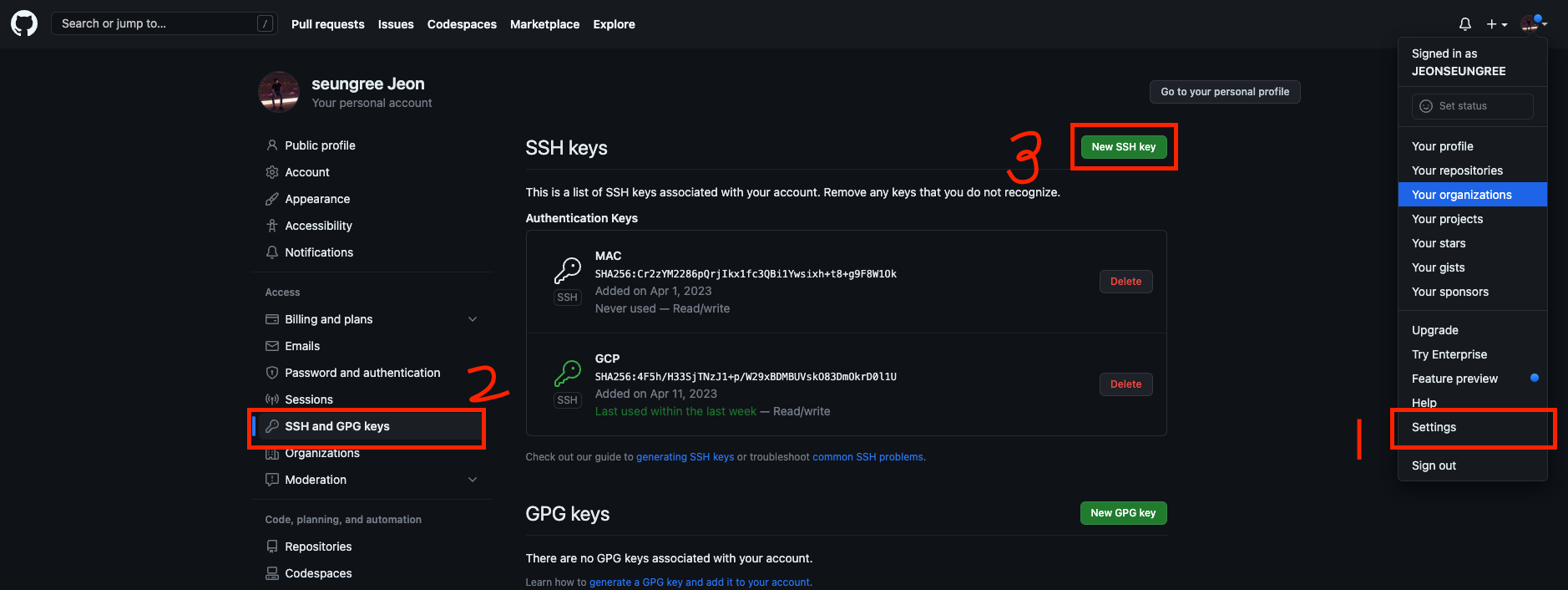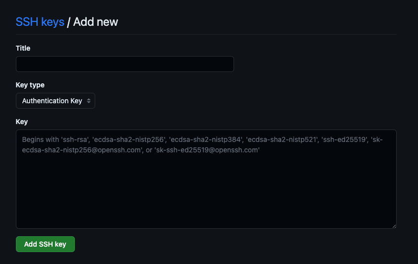 깃허브 SSH 2 1. Title은 원하는대로 지정한