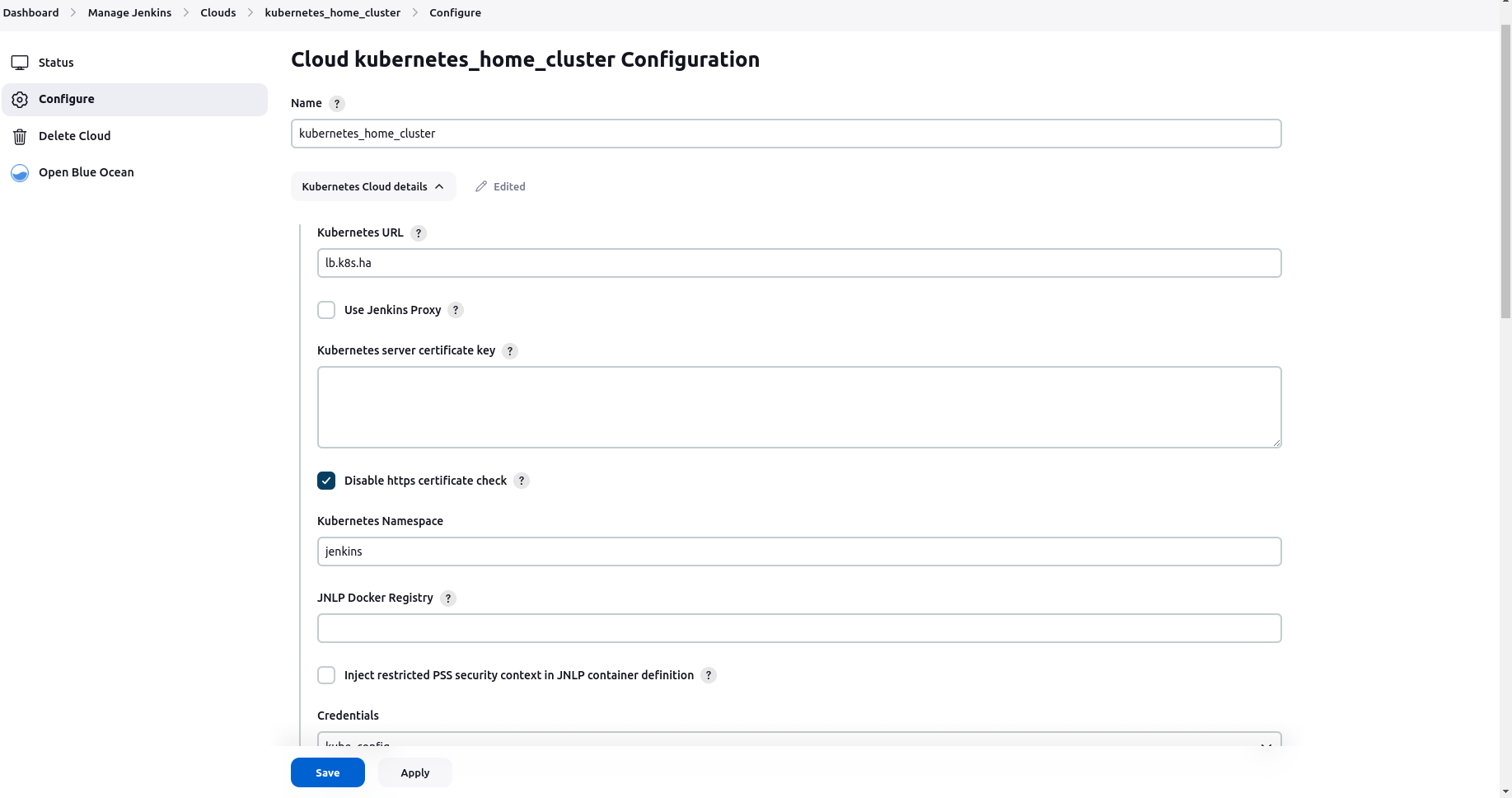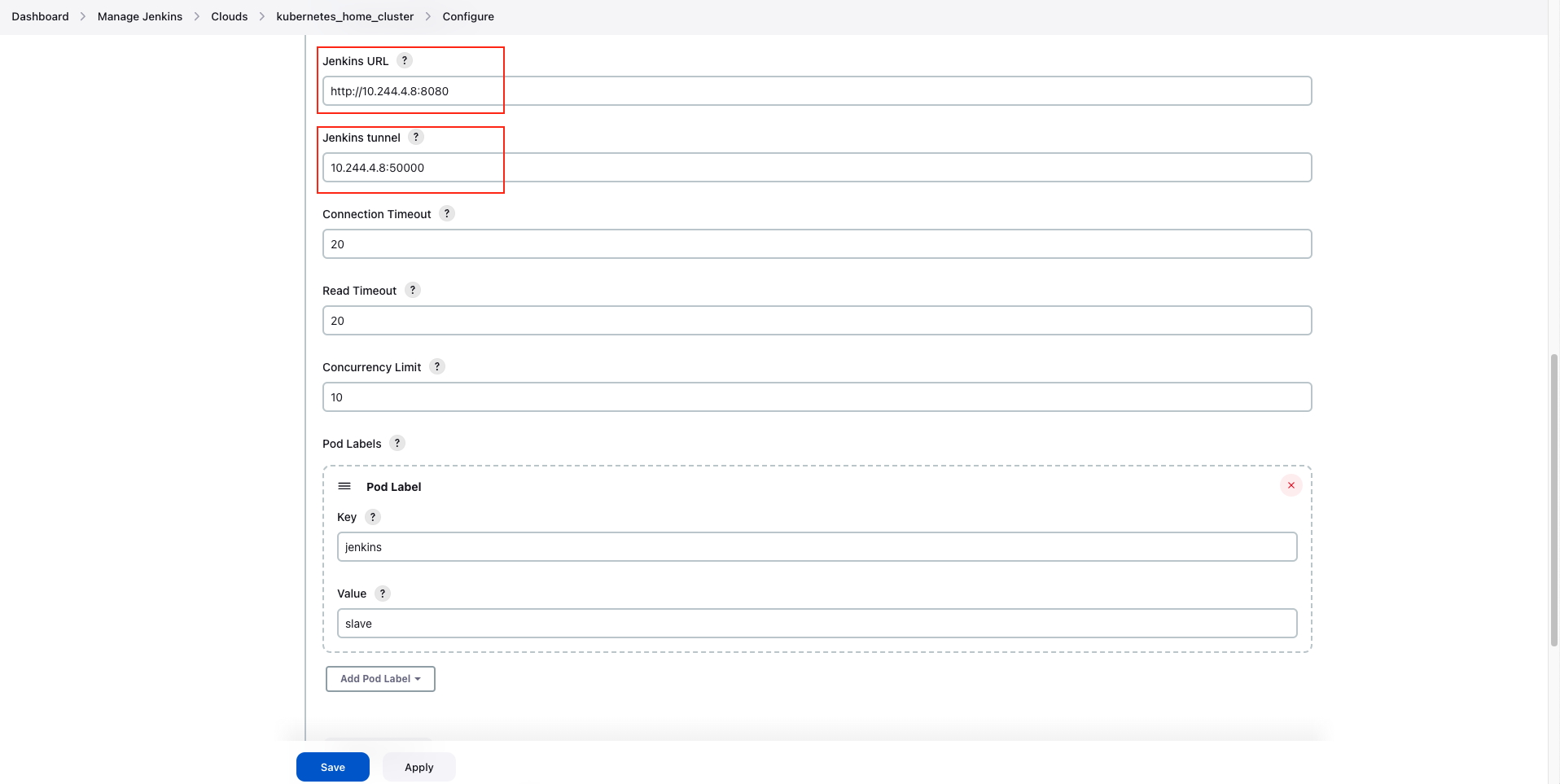 Jenkins -> Manage Jenkins -> Pugins -> System Configuration -> Cloud