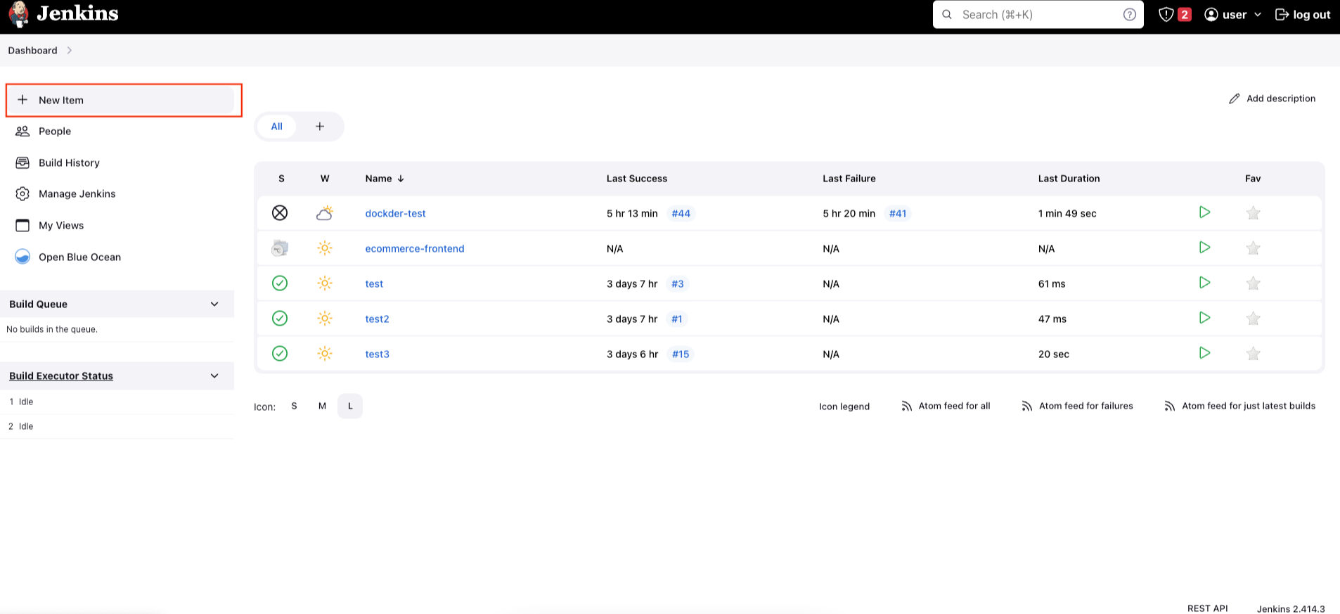 설정한대로 동작하는지 확인하기위해 Dashboard -> New Item을 생성한다.