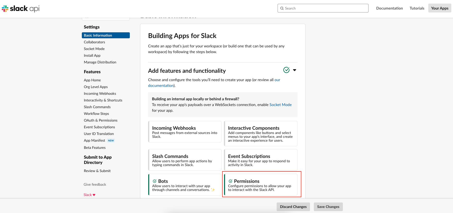 슬랙 채널에 보일 이미지등 설정 1. 위로 스크롤 하여 Add features and functionality 우측에 화살표를 눌러서 펼친다