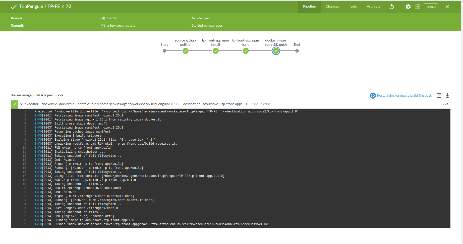 4. CI 프로세스 진행 후 완료 화면