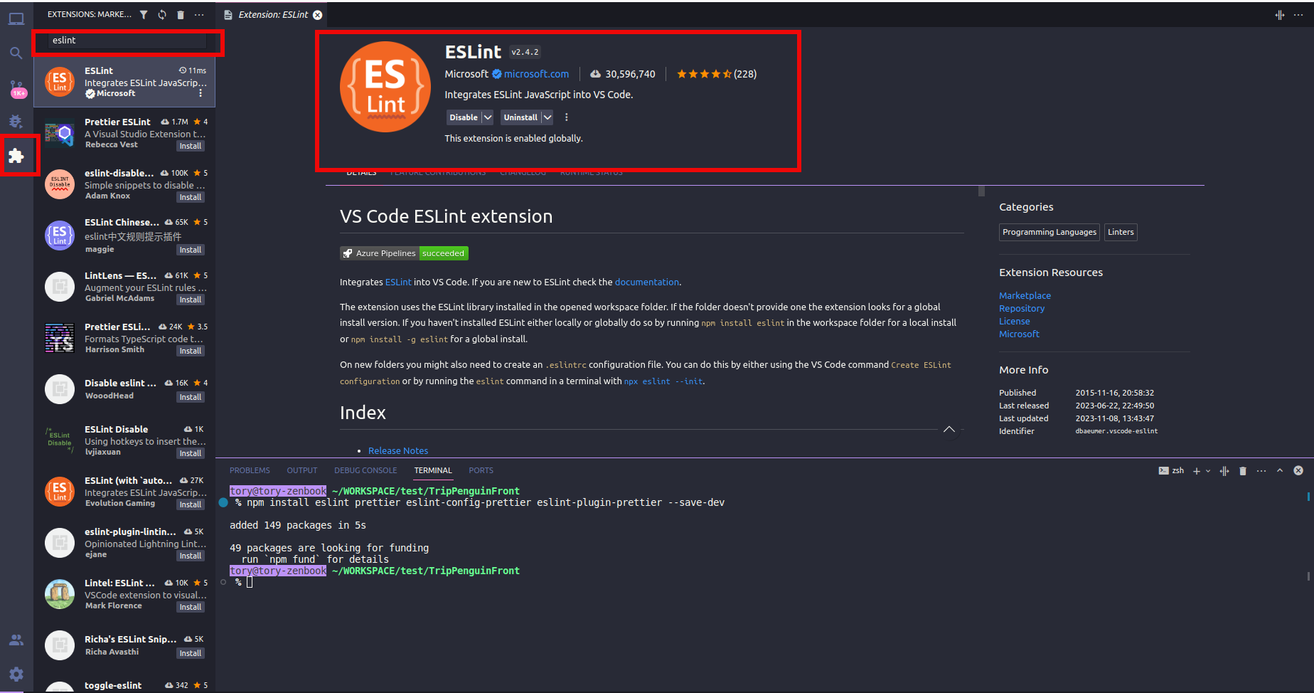 // 패캐지 설치 npm install eslint prettier eslint-config-prettier eslint-plugin-prettier --save-dev // eslint init npx eslint --init