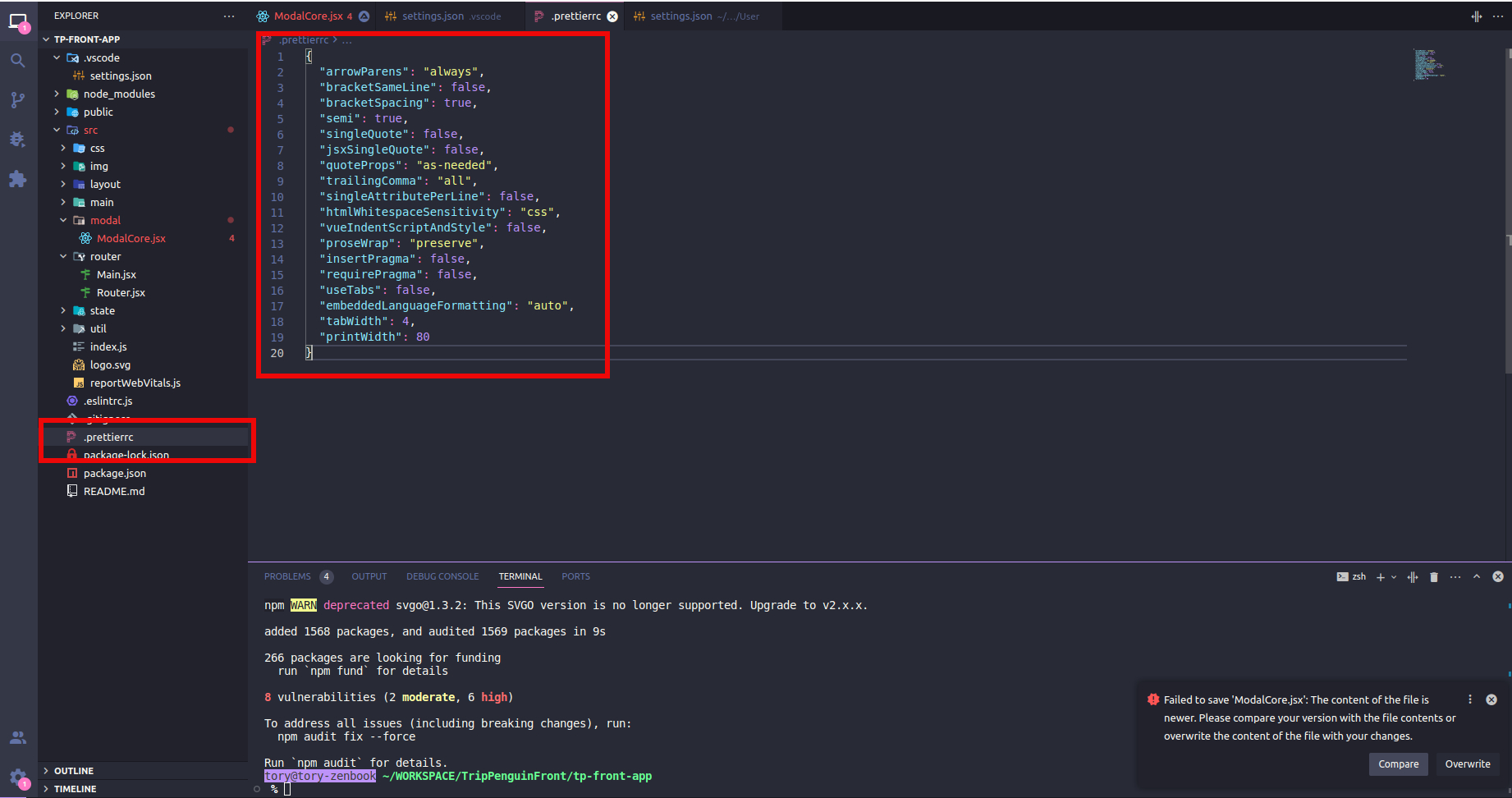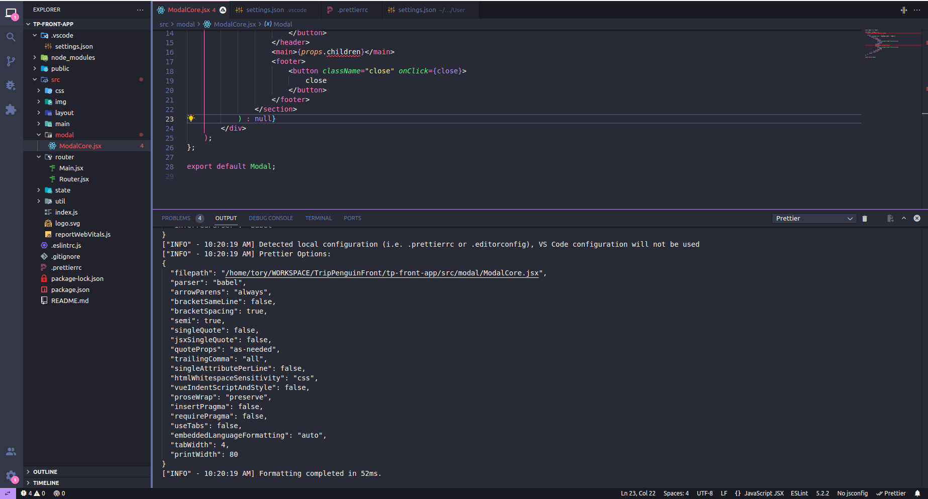 prettierrc 코드 포맷 적용 4. 적용 확인