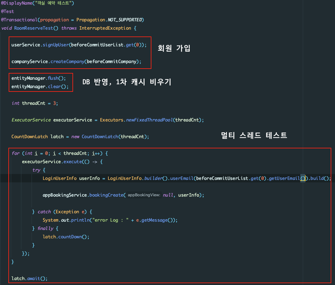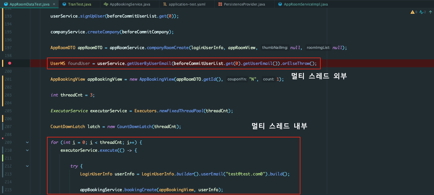 비관적 락 테스트를 하기 위해서 멀티 스레드 코드를 테스트하였다.