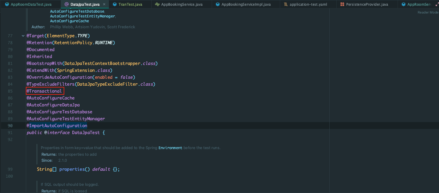 DataJpaTest 사용시 @Transaction이 존재하는데 하나의 큰 트랙잭션에 다른 트랜잭션을 참여하도록 (required) 했기 때문에 적용이 되지 않았다.